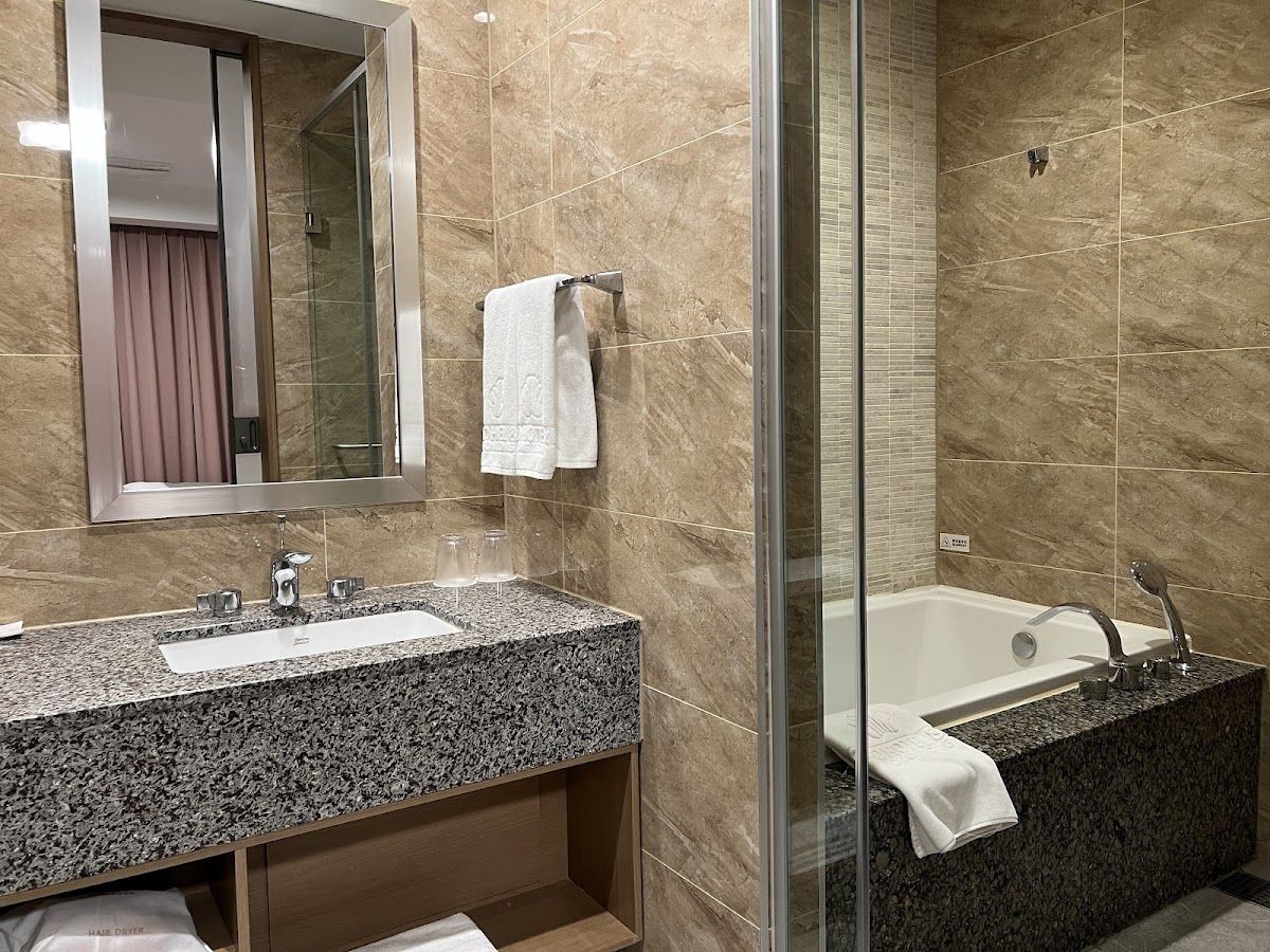 The sparkling outdoor pool and well-equipped fitness center cater to those seeking recreation, while families will appreciate the kid-friendly amenities available. It's worth noting the minor drawback mentioned by guests regarding the absence of a shower booth, replaced instead with a shower curtain. However, the overall experience seems to overshadow this slight inconvenience.
